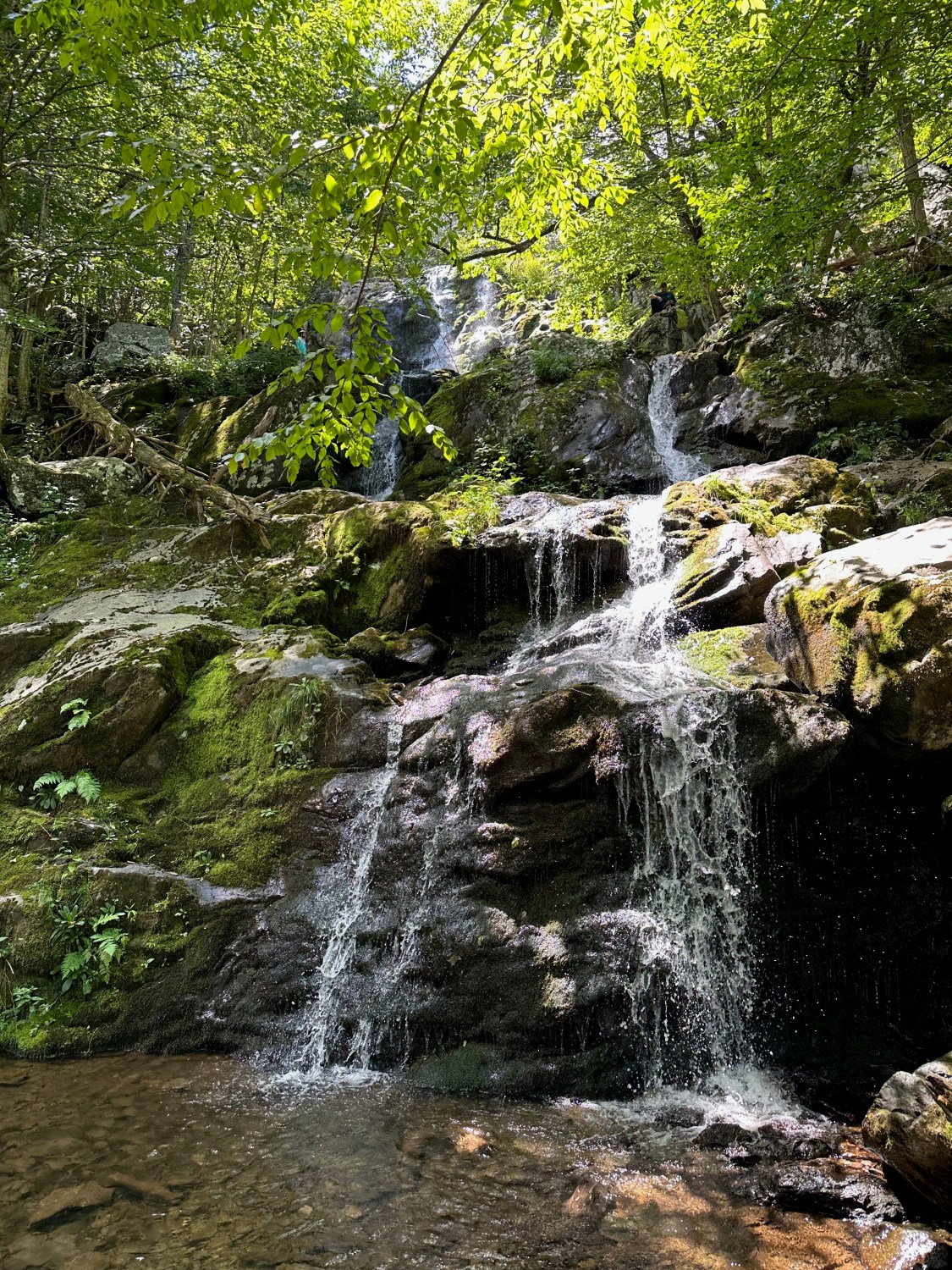 We chose a hike classified as moderately strenuous and described accurately as a 1- 2 hour hike – Dark Hollow Falls. It was lovely to travel along the stream until you reach the falls. The hike is rocky at some points and hiking boots are required to maintain even footing. The return hike is quite steep and strenuous. I enjoyed the hike. Although we did not bring our walking sticks, I wish we had, and I recommend them to support balance along the rocky terrain.